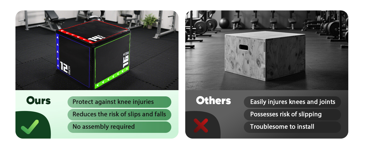 Our foam jump box is both lightweight (50% lighter compared to wooden boxes) and durable. Reinforced edges ensure long-term durability, making it perfect for HIIT, CrossFit, or rehab training. Its lightweight nature allows easy movement, storage, or use as a bench for sit-ups and arm workouts.