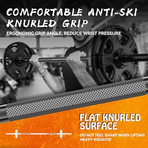 ANTI-SLIP & COMFORT: The diamond-shaped knurls on the bar provide excellent grip and slip resistance, even when your hands are sweaty. The depth of the knurling is just right, not too deep to cause discomfort or injury, ensuring safety and comfort during your workouts.