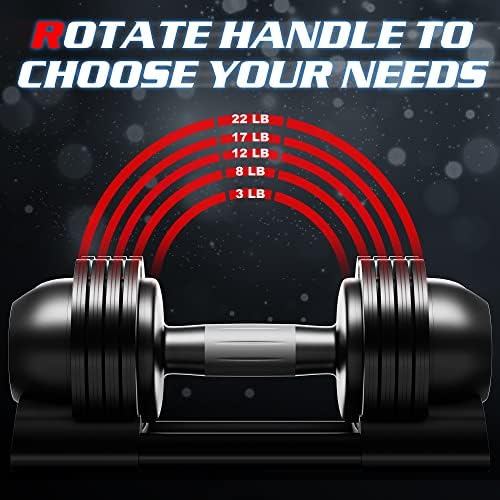 Come with 2pcs adjustable weight dumbbells, each featuring a wide range of free weight adjustment from 3-8-12-17-22lbs, totaling 44lbs. Perfect for beginners to professionals, this set is designed to meet your diverse weight training needs, helping you modify muscle lines and strengthen muscle fibers.