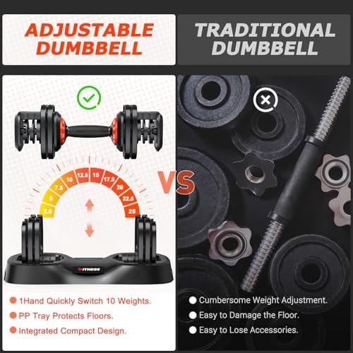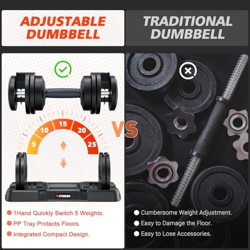 – 5-25 lb Range: Easily switch between 5/10/15/20/25 lb weights in 5 lb increments.