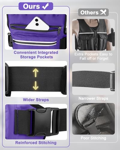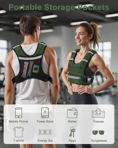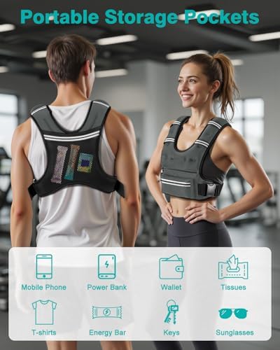 The Mieakvool weighted vest features 2 zippered front pockets and 1 large back net pocket, designed to securely hold a variety of essential items. Perfect for storing your phone, power bank, wallet, keys, towel, energy bar, and sunglasses, these pockets offer easy access for quick retrieval during your workout.