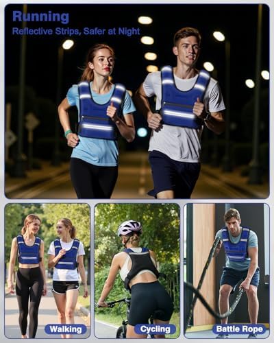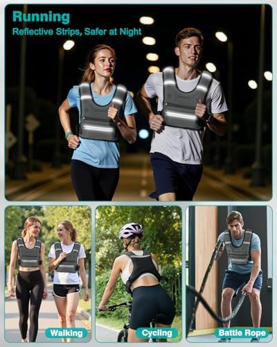 The Mieakvool weighted vest is a versatile choice for various activities including running, walking, cycling, strength training, muscle building, weight loss, and even hiking. Reflective strips on the vest enhance your visibility in low light conditions, making it safer to exercise at night.