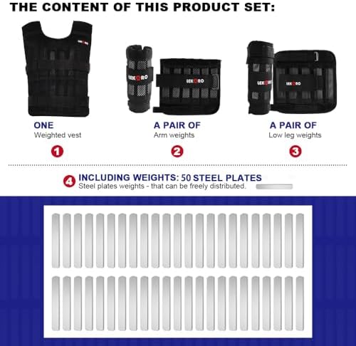 Our clever design features 32 small pockets on the vest, 6 on each arm weight holder, and 5 on each ankle weight holder. Easily distribute the steel plates to customize the weight according to your preferences and training needs.