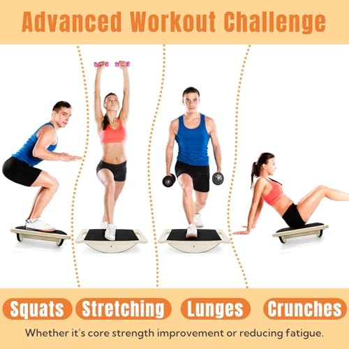 ELFULLY wobble board meets your various fitness needs, whether it’s core strength improvement, stretching muscles, or reducing fatigue. It also provides challenging exercises such as push-ups, squats, planks, lunges, crunches, mountain climbers, and bridges.