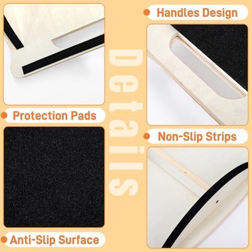 Made of high-quality plywood, this rocker board for adults can withstand up to 350 lbs of weight, ensuring stability, durability, and long-term service. The anti-slip surface and protection pads protect both the board and your floors.