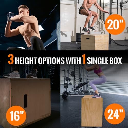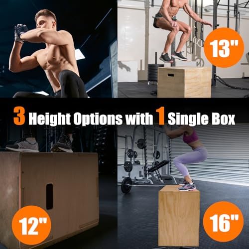 • 3 Different Heights: Choose from three adjustable heights (12″, 13″, 16″) to suit your fitness level. Ideal for box jumps, step-ups, push-ups, and dips.