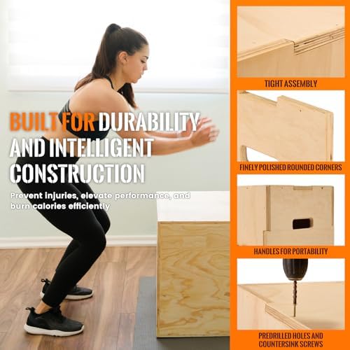 • Durable and Robust Construction: Made from high-quality plywood with precision puzzle joints, our plyometric jump box can handle up to 400 lbs without wobbling or breaking.