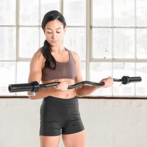 STURDY CONSTRUCTION – This Olympic curl bar is crafted from cold-drawn solid steel, providing superior strength and durability. The durable black powder coat finish adds an extra layer of protection against wear and tear.