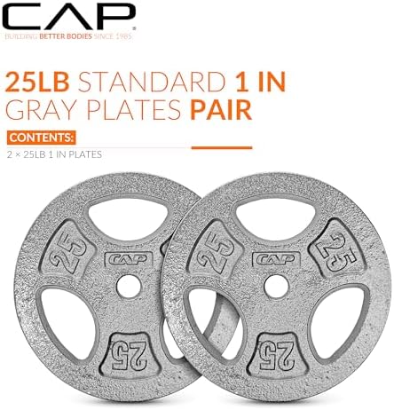 ✔ CONSTRUCTION – These solid cast iron weight plates are coated in a durable gray baked enamel finish to prevent chipping and peeling. The ground edges and machine center hole ensure a standardized product design. With a 1-inch center hole, they perfectly fit standard bars.