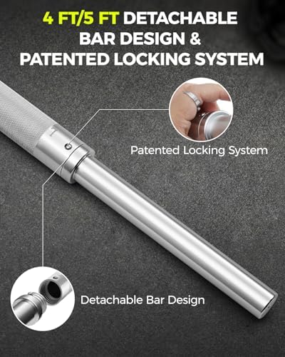 🚀 [Professional-Grade Aluminum Gym Bars] Crafted from lightweight aerospace aluminum, our bars are naturally rustproof, water-resistant, and rated for up to 450lbs. Choose from 4ft or 4.9ft lengths, both ideal for home gyms. With a consistent 30mm diameter, they offer balanced control and a comfortable grip. Perfect for compact spaces, especially designed for women.