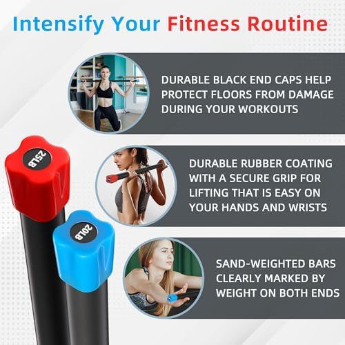 Fitvids Total Body Workout Weighted Bar – Multiple Sizes for Home Gym Use