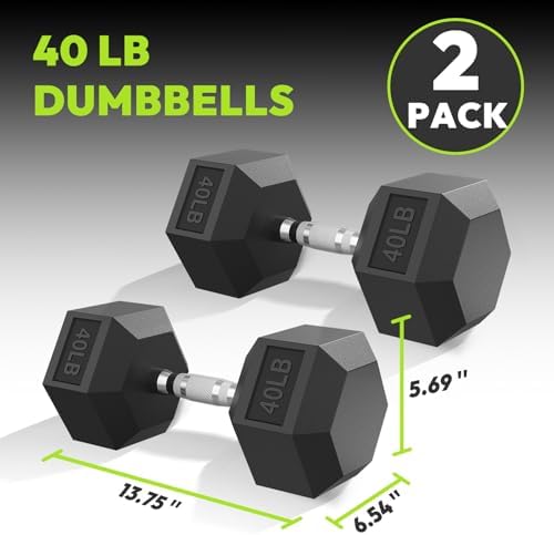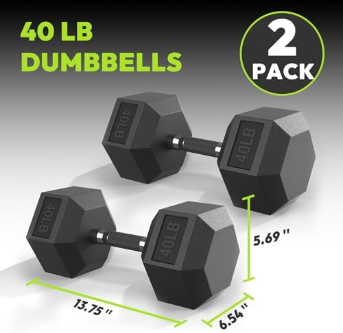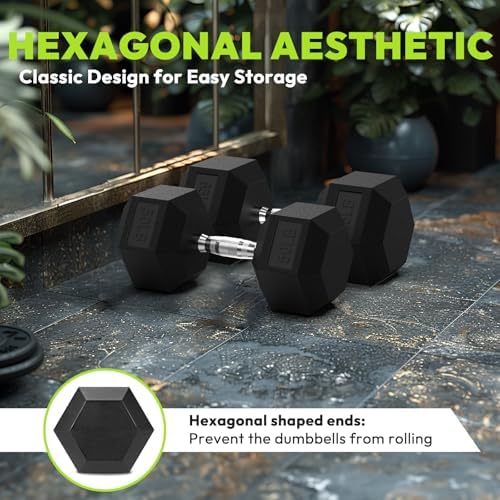 Hex Dumbbell 40-575 lb Rubber Encased Strength Training Dumbbells, Fitness Hand Weights for Home Gym Use