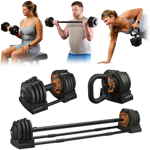Expand your exercise options with our adjustable dumbbells, suitable for various movements like curls, presses, and lunges. Tailor your workout to meet your specific fitness goals.