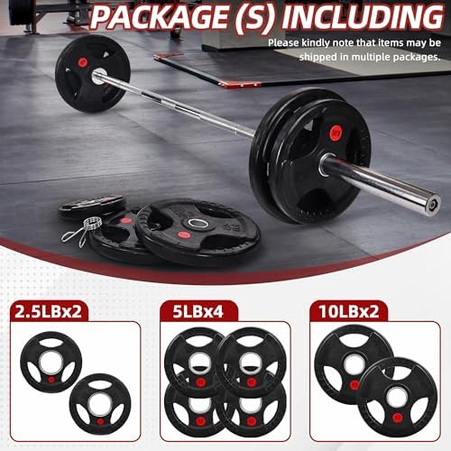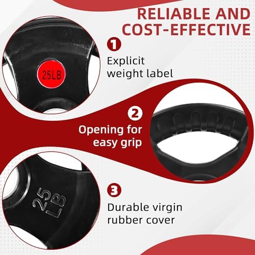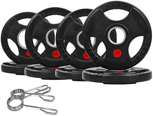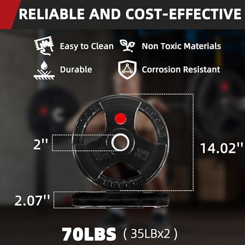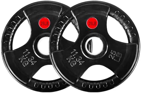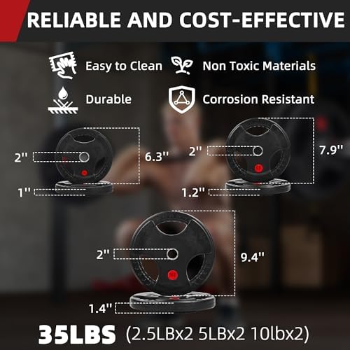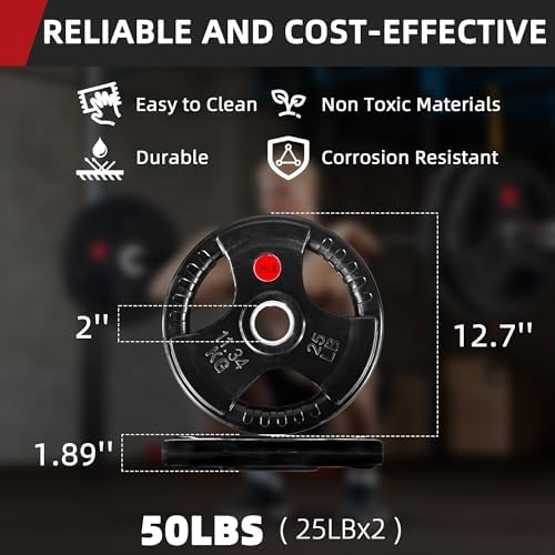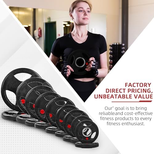 Olympic Grip Plates 2″ with 3-Handle Design | Low-Noise, Floor Safe for Home Gym | Deadlift & Dumbbell Training, Perfect