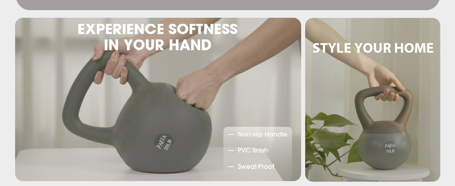 The textured, matte-finish hard PVC handle provides an enhanced grip, while the soft PVC base absorbs impact. Lightweight and ergonomically designed, these kettlebells ensure stability and quiet workouts. The stackable design saves storage space, making them ideal for small homes or outdoor fitness.