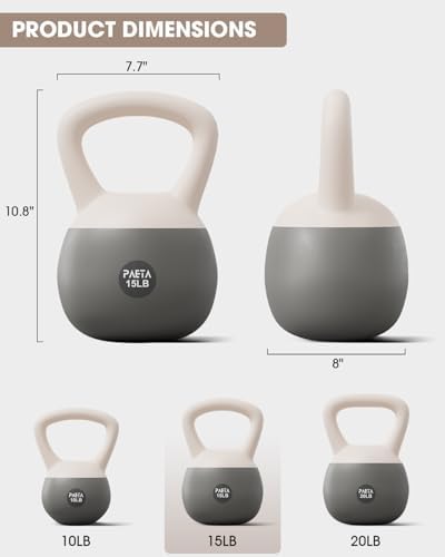 PAETA Soft Kettlebell for Home Fitness – Anti-Slip Grip & Wide Handle Design, Gentle Floor-Friendly Impact – 10lbs, 15lb