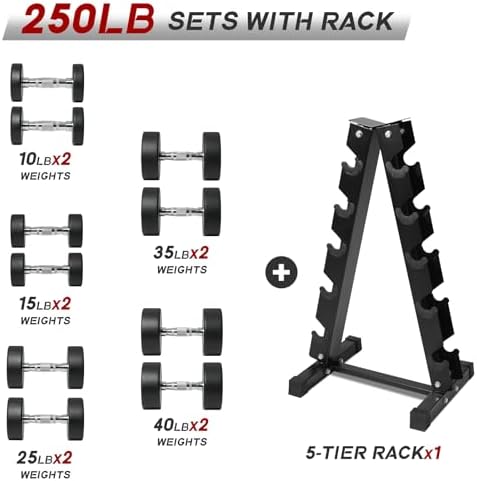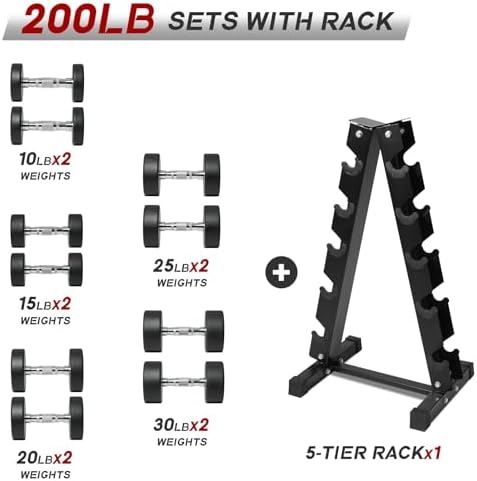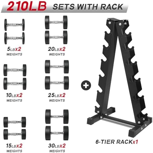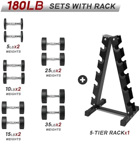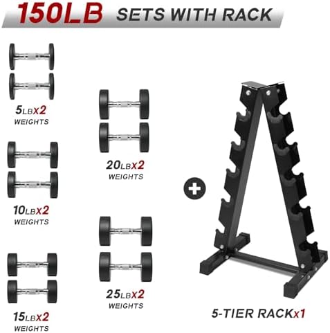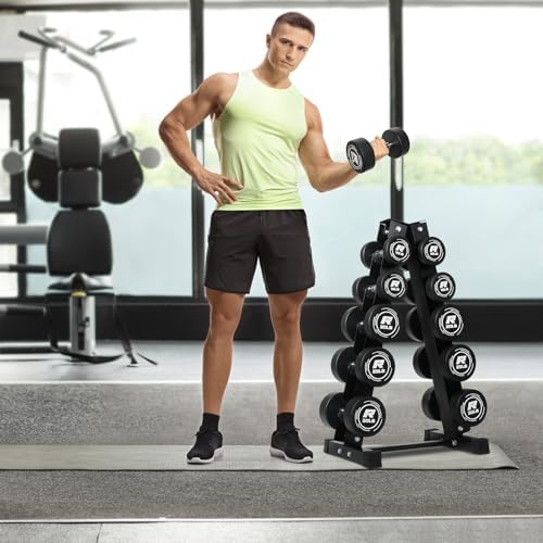 Premium Material: Our round dumbbells are crafted with PVC coating and solid cast-iron cores for unmatched durability and longevity. They won’t damage your floors or other equipment. These dumbbells come with a rack made of solid cast-iron to prevent bending and breaking.