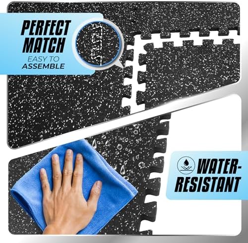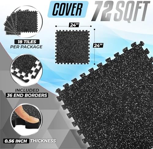EASY TO ASSEMBLE: Create your perfect workout area with customizable rubber interlocking tiles. Set up is quick and hassle-free, adapting to your unique gym space requirements. Heavy-duty floor tiles offer durability for any exercise.