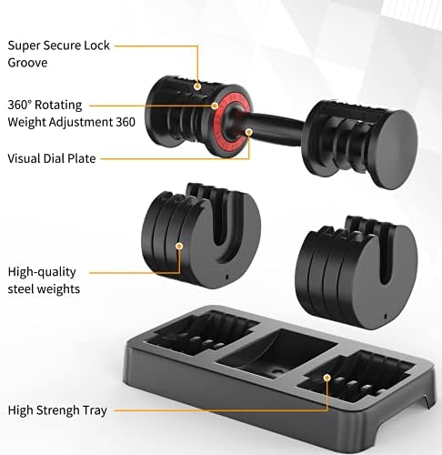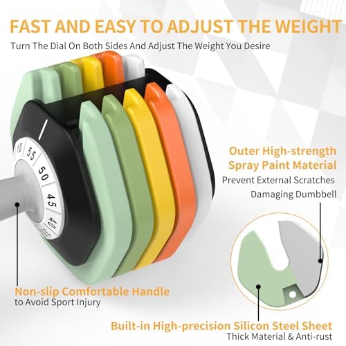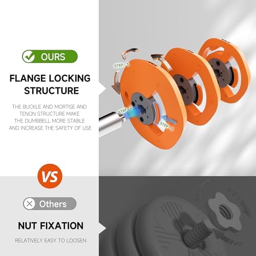Exclusive adjustment countweight plates allow you to easily select the weight you need. Simply hold the handle and turn the pointer to the corresponding number. With 8 locking options, the dumbbell set is securely fastened to ensure safety during use.