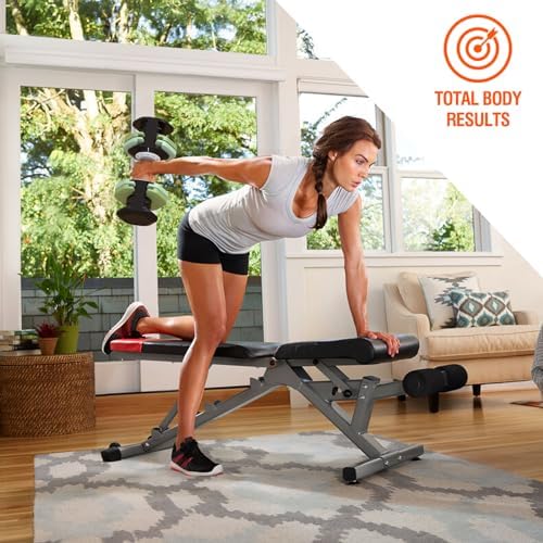 The SKOK adjustable dumbbell is ideal for upper body workouts, toning and shaping your arms and shoulders while strengthening your muscles. It comes with a secure storage tray, maximizing space in your home gym and keeping everything organized.