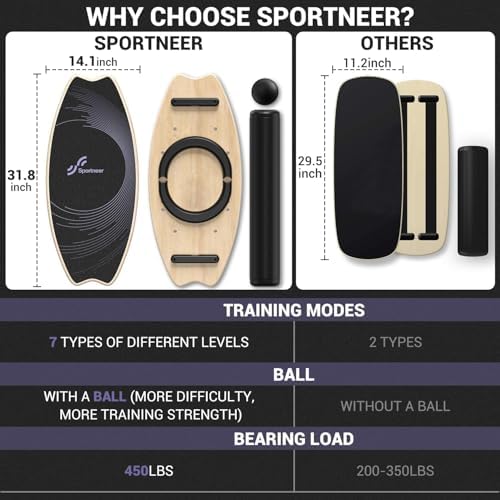 Looking to enhance your workouts? The Sportneer 2-in-1 set is your perfect choice. This versatile balance board comes with a balance board, a roller, and a ball, making it versatile and easy to adapt to your needs.