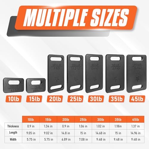 Choose from 7 different weight options: 10/15/20/25/30/35/45 LB. Versatile weight sets are also available for all fitness levels. Combine the weights for added strength and stamina.