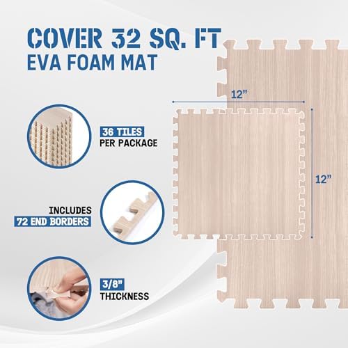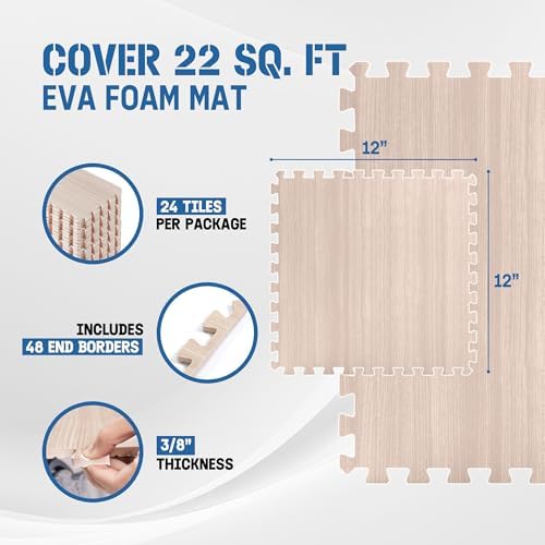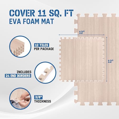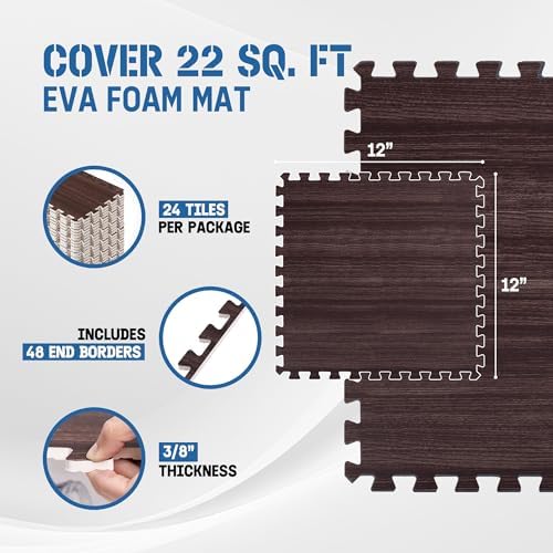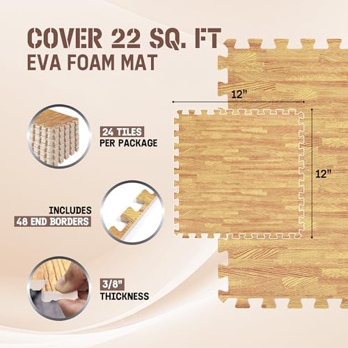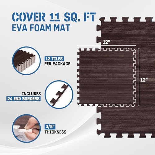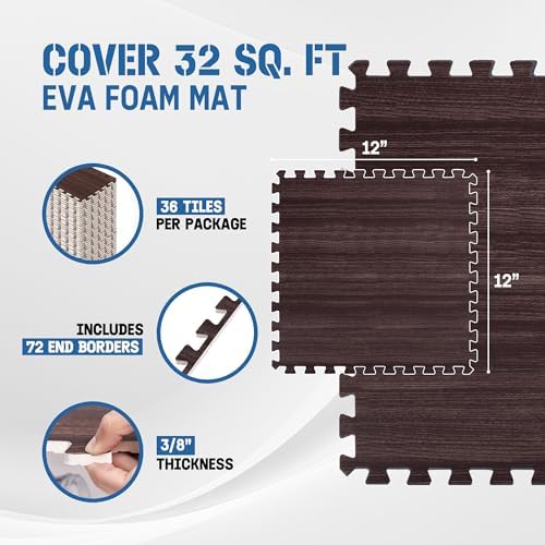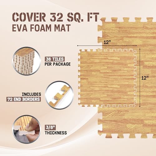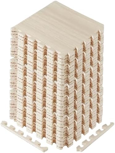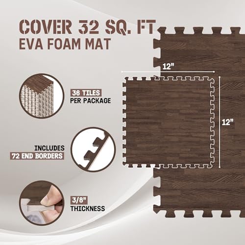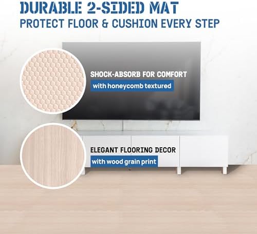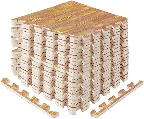 DURABLE DOUBLE-SIDED DESIGN: Strong EVA foam construction protects your floors from scratches and dents. Aesthetic wood print on one side adds beauty while the honeycomb pattern on the other side offers shock absorption. This design provides both durability and flexibility.