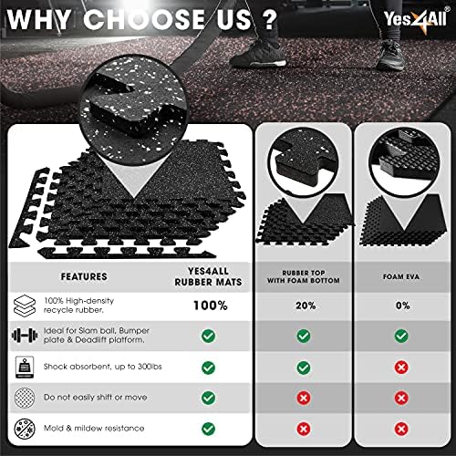 Yes4All Heavy Duty High Density Rubber Floor Tiles Interlocking Mat for Commercial Use in Offices and Factories Selling