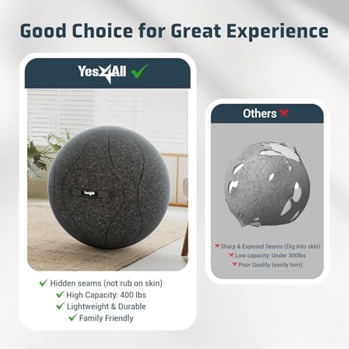 Yes4All Office Exercise Ball Chair, 400lbs Capacity, Light Gray Yes4All Office Exercise Ball Chair, Anti-Burst, Light