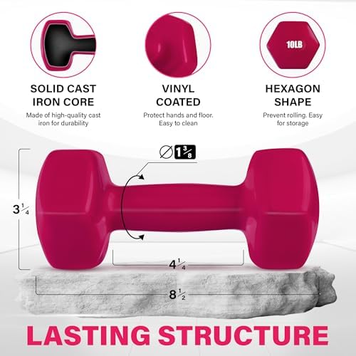 VINYL-COATED: The vinyl-coated finish protects your hands and floors during workouts, making cleaning a breeze. Enhanced grip stability supports better form control, making this dumbbell set ideal for intense training sessions.
