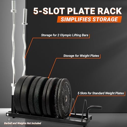 – Sleek design helps organize various types of weights, including 2” bumper plates and Olympic plates, keeping your workout area tidy.