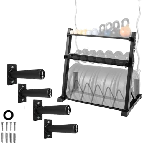 – Flat surface and robust hardware ensure the bumper plate rack mounts firmly to the wall.