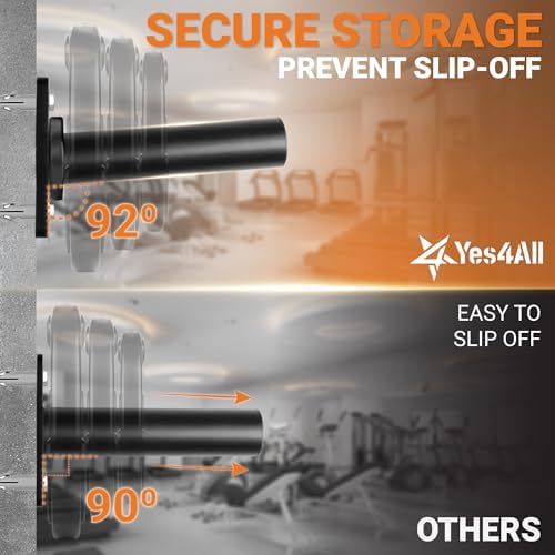– Designed with a slight upward curve to act as a locking mechanism, ensuring weight plates do not slip off.